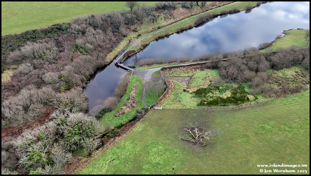 Coming back to the reservoirs, each of them has a little separation lake at the top where excess water is diverted to channels running alongside the reservoir.