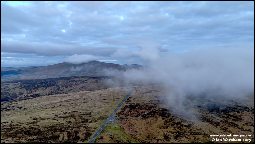 In this picture, Beinn-y-Phott is completely obscured by the cloud and Snaefell just has a little cloud cap. My car is parked (in a very muddy area!) lower centre.