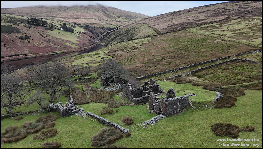 Dropping down for a closer look at The Crammag. Although easily seen from the other side of the reservoir, in practice it's quite difficult to reach this tholtan on foot.