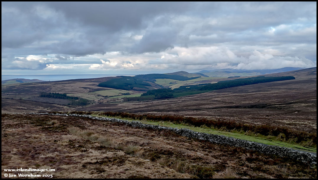This is looking across the moorland towards Glen Rushen, with the green lane from The Sloc road towards Eary Cushlin in the forgreound.