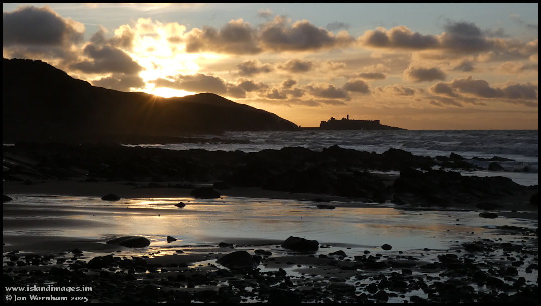 The sun will shortly be setting behind Peel Hill so I'm wandering back down the beach.