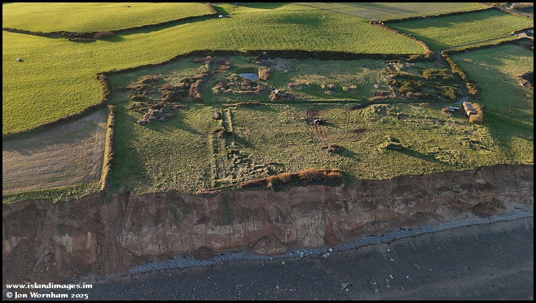 Taking a closer look at the 'domestic site' which is being affected by coastal erosion with the cliffs looking quite unstable.