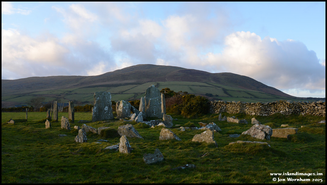 Late afternoon at the Neolithic burial site of Cashtal yn Ard on the 4th February 2022 with North Barrule as a backdrop. The site dates back to around 3,000 BC.