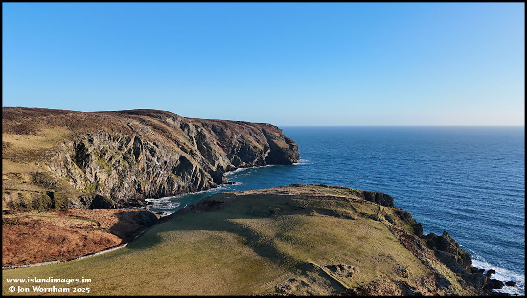 This first aerial view is looking across the Iron Age hill fort at Buroo Ned, which dates it from around 800BC to 100 AD. Spanish Head beyond.