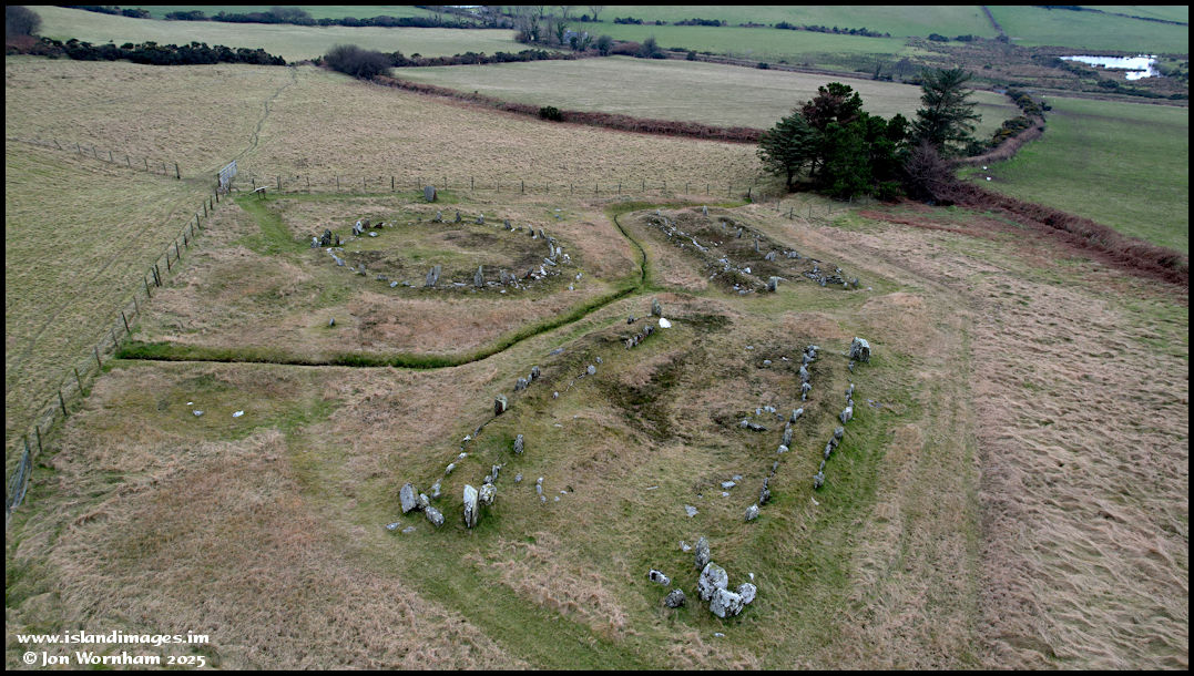 A low level view with the larger of the two Longhouses nearest. A suggestion is that the Roundhouse may date from around 360 AD and the longhouses from around 950 AD.