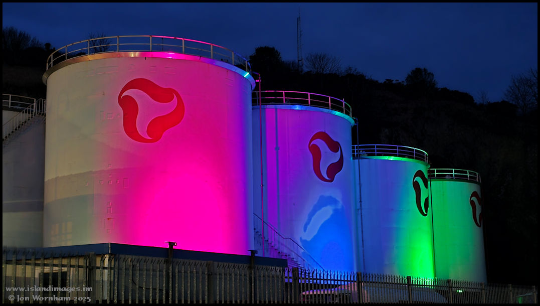 Colourful illuminations of EFLs storage tanks at the harbour.