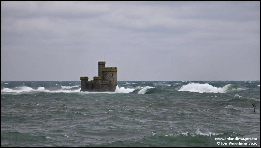 Some big waves washing the Tower of Refuge. Ath these high tides, the Conister Rock is totally covered by water, the opposite to how it was in the night photo from a few days back.