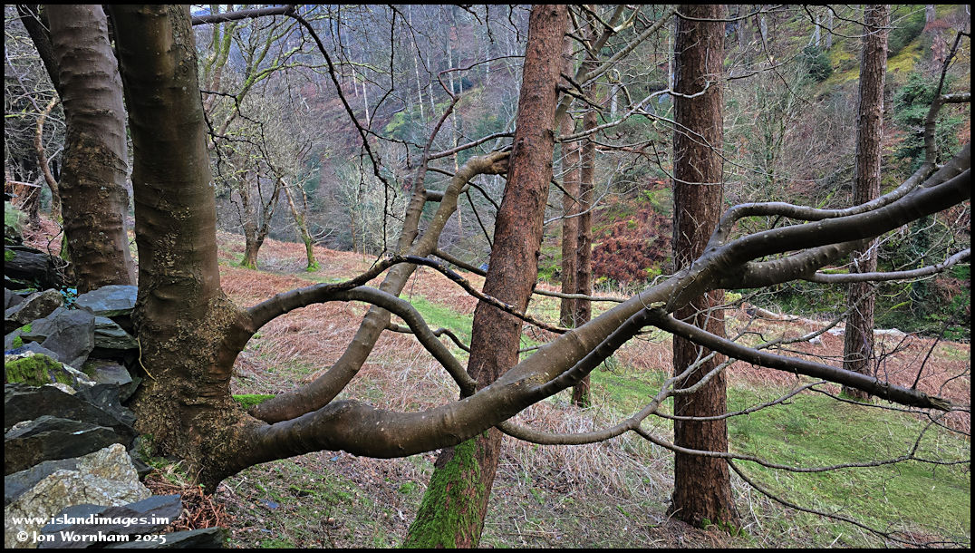 Walking back up the road after parking at Tholt-y-Will, I saw there were several of the trees that had caught my attention, all growing out of the wall supporting the road.