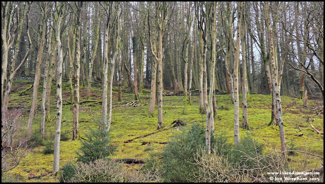 Looking across the river to a lovely wooded but still open area on the other side. This is where all the lower footpaths seem to have been abandoned, although the higher paths may still be available when the glen re-opens.
