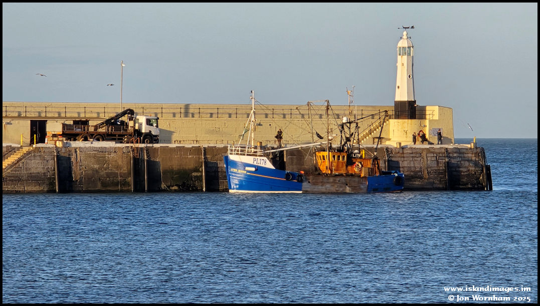 'Lynn Marie' round the breakwater where a lorry is waiting to unload her catch of scallops. This picture is still with the phone camera, using the 115 mm (equivalent) lens, plus 10x digital zoom!