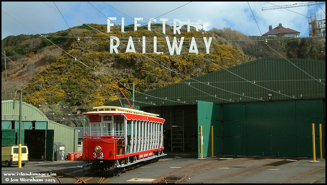 On the 23rd of March 2004 I caught a brand new looking Car No 33 outside the Manx Electric Railway depot at Derby Castle. In fact this was one of the last two power cars delivered to the railway - in 1906!