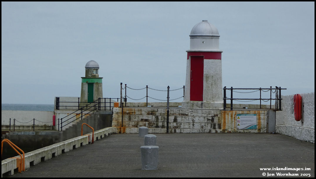 The 'Pepper Pot' lighhouses gauarding the entrance to Laxey Harbour.