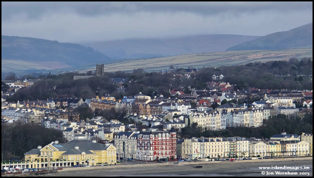 Using 10x digital zoom with the 115mm lens for this shot past the Villa Marina with St Ninian's Church dominating the scene behind.