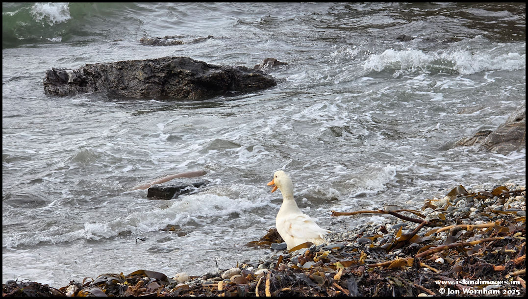 There's often wild ducks around the coastline, but this fella wandering around on the beach looks more like a domestic variety to me.