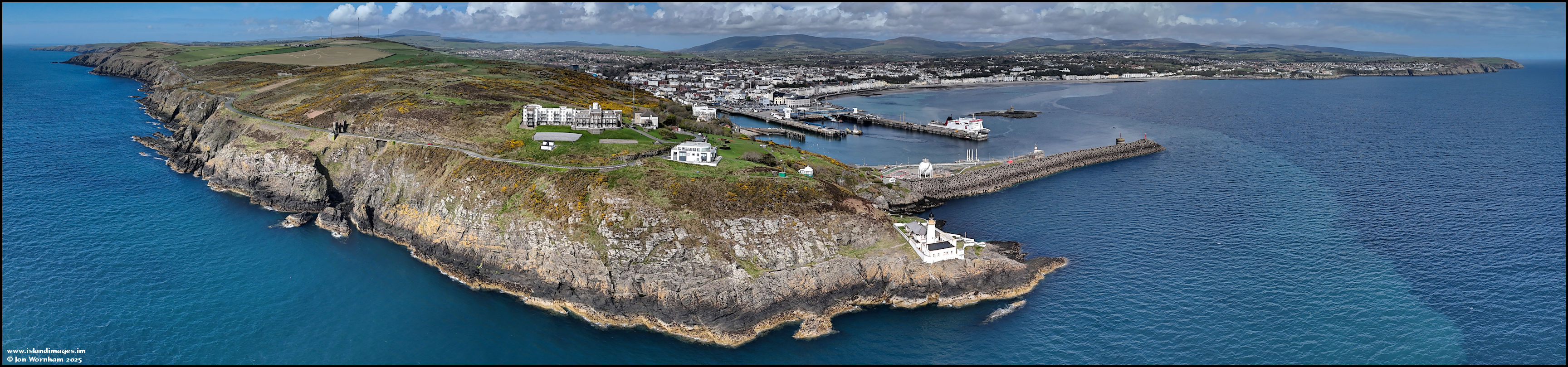 A stitched panorama at Douglas Head, centred on the apartments and open air theatre.