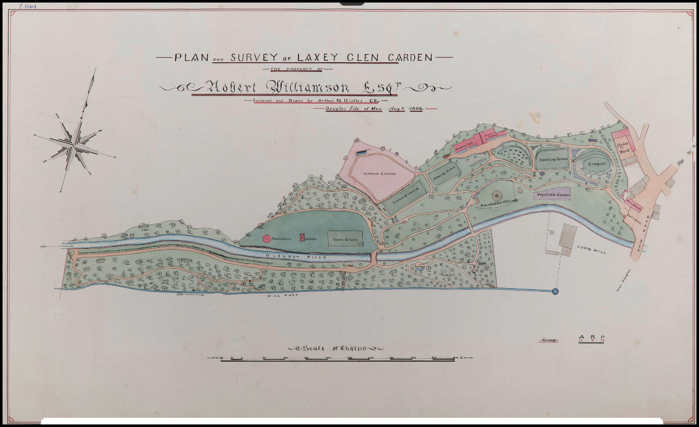 This plan of the 'Laxey Glen Garden' is in the iMuseum and shows the layout in 1886, interestingly before the boating lake was constructed. Lots of activities were available for visitors.