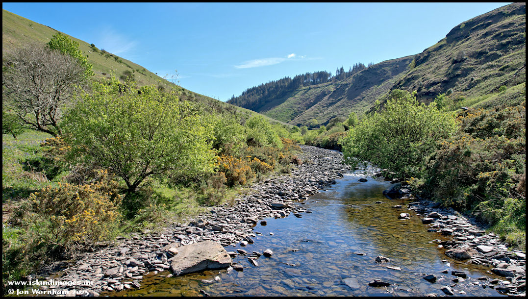 Low level over the Sulby River. Quite fordable at the moment but you'd still get your feet wet!