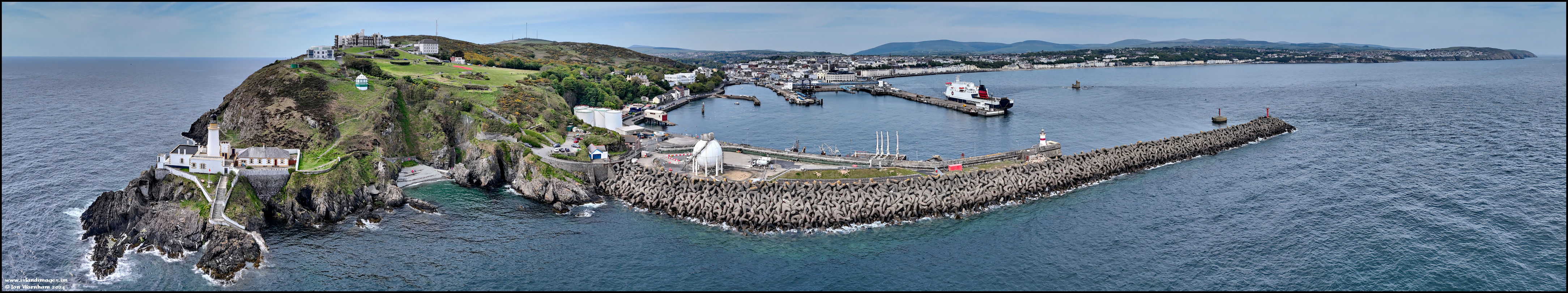 A low level stitched panorama looking from Douglas Head, then past the harbour and over the bay to Onchan.