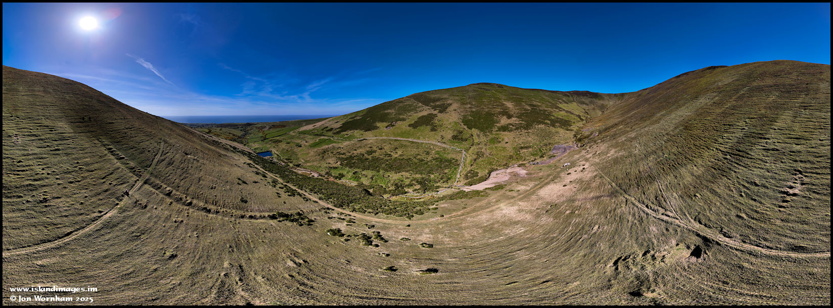 360 degree panorama at Ballakinnag Glen. This first panorama was the 'high level' one.  I was flying from the hillside track anyway, but flew to a higher level at first.
