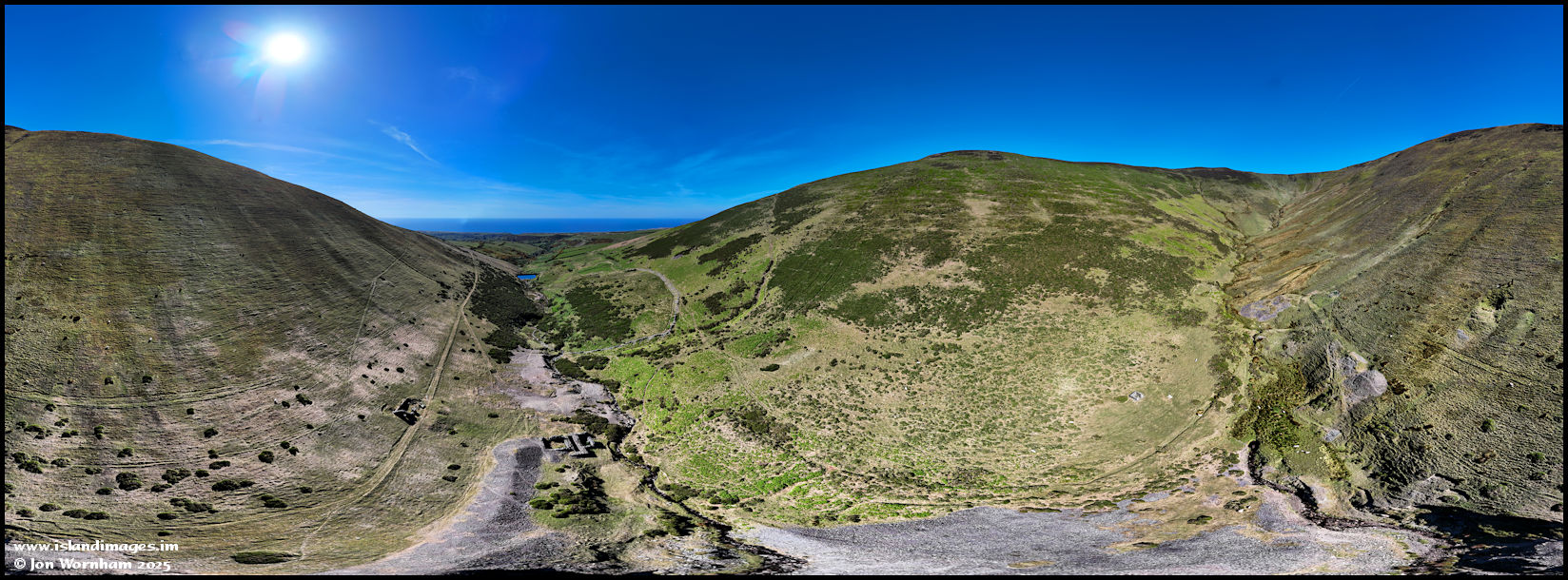360 degree panorama at Ballakinnag Glen.  A medium level look around from higher up the valley from the main remaining mine buildings.