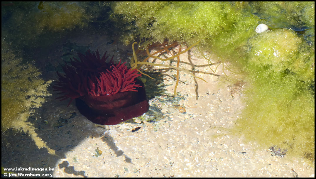 A Sea Anemone waves its tentacles in a rock pool.