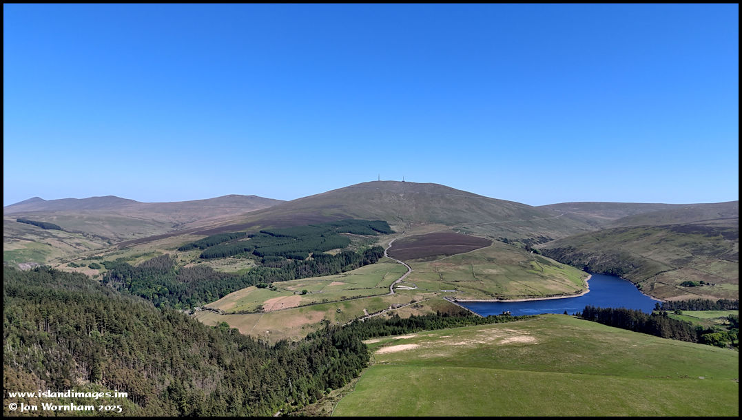 Climbing up to a higher altitude and Sulby Reservoir comes into sight, with Snaefell straigh ahead.