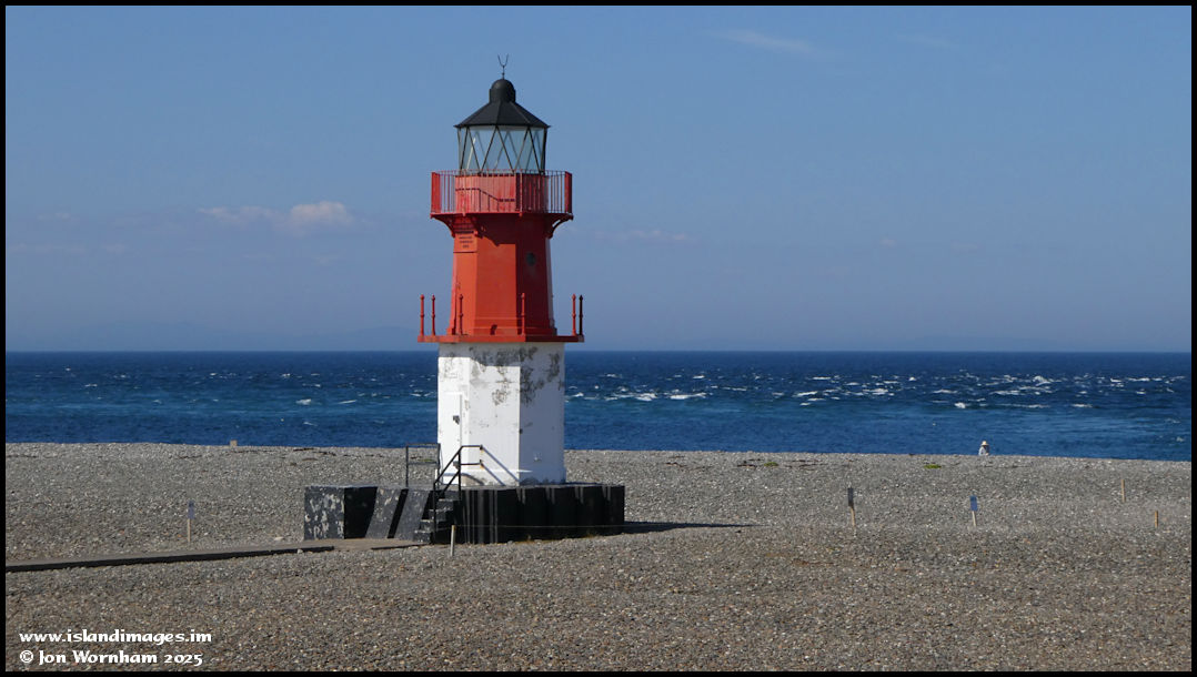 The 'winkie' on the beach at the Point of Ayre, with disturbed seas behind where currents mix.
