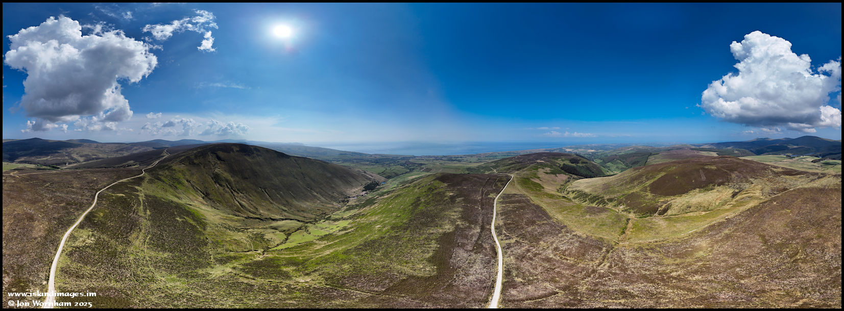 A 360 degree panorama featuring Slieau Freoaghance, Ballakinnag Glen and Glen Dhoo.