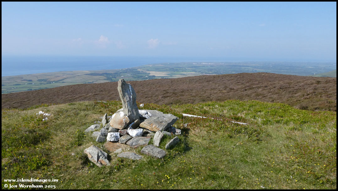 The summit of Slieau Curn is now marked by this little heap of stones. When I first photgraphed this spot in 2013, it was maked by a wooden pole, which has since fallen over. Click the image to go back to then.
