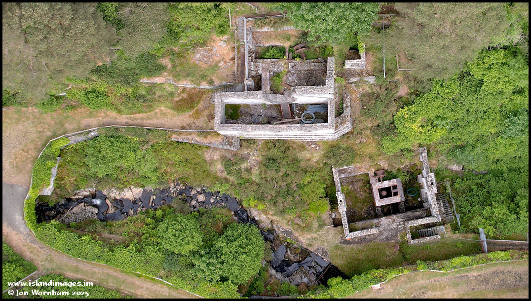 A vertical view of the Engine House and Machine House, still with some of the old equipment visible inside.