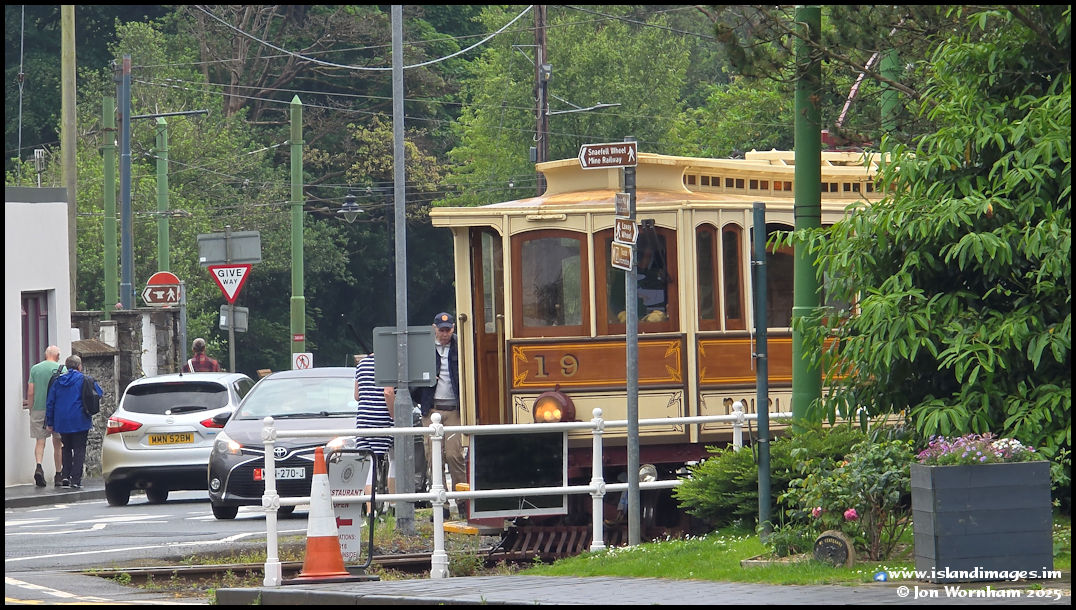 Manx Electric Railway Car No 19 peaks out from behind a bush!