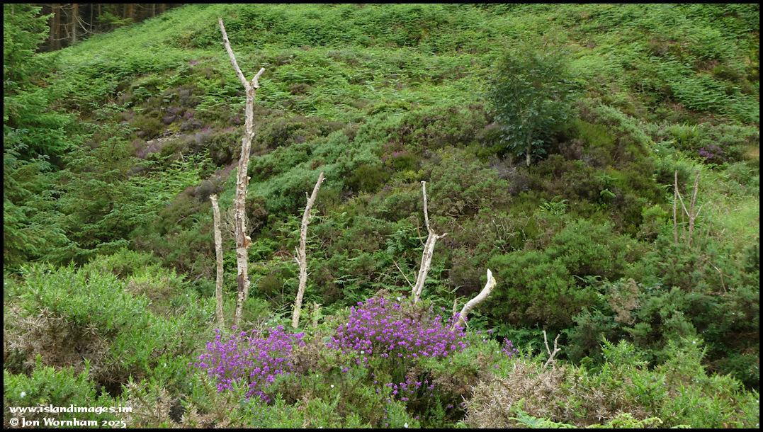 Heather and gorse in competition! It's difficult to determine from the map where Glen Mooar ends and Glen Rushen starts, but as I've now branched off the old road I'm calling this bit Glen Rushen!