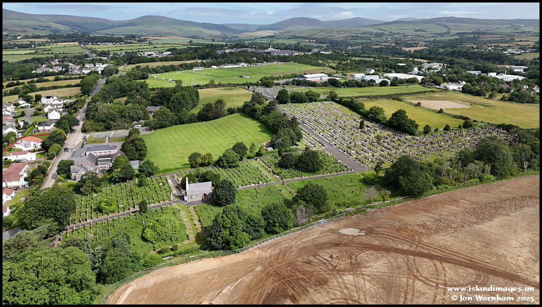 Moving the angle round to look across the extensive graveyard to the hills in the distance.