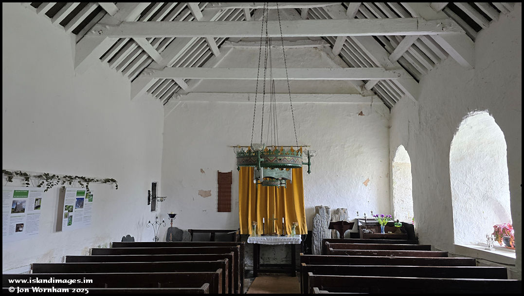 An internal view of the church, looking to the east. There is no electricity or heating in the building, if artificial light is requited, candles can be put into the chandeliers.