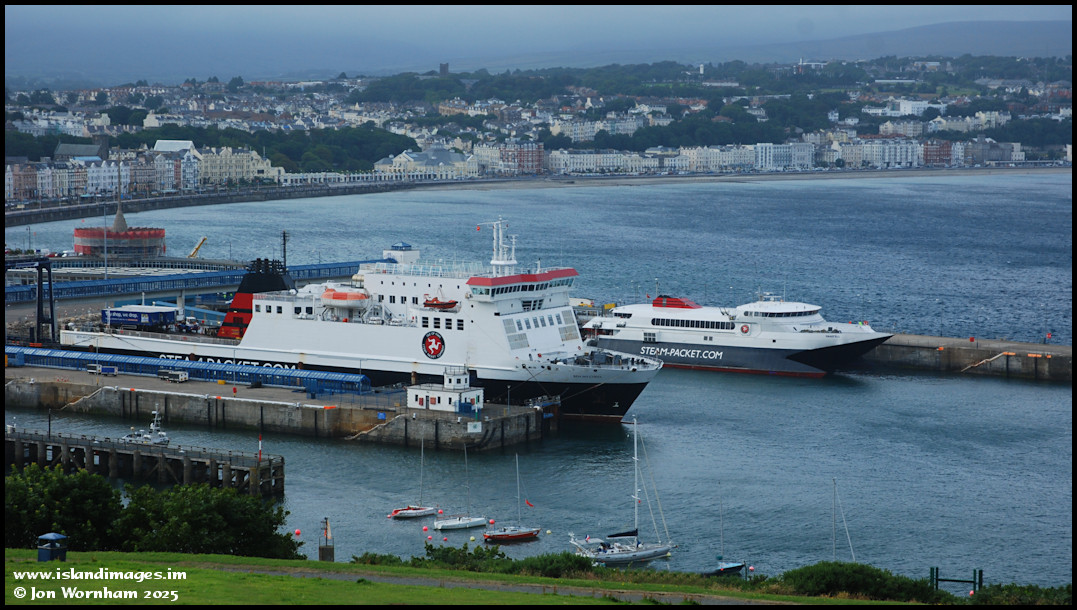When you live on an island, sea and air links are vital, and here we are looking down from Douglas Head to where the Steam Packet's 'Ben my Chree' and fastcraft 'Snaefell' were berthed in the harbour on the 17th July 2009