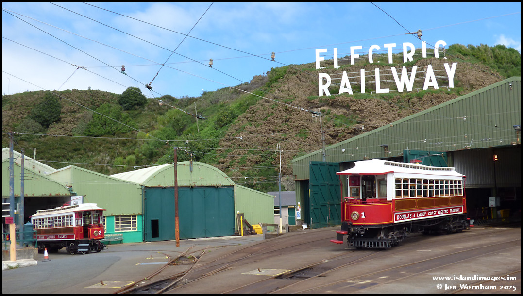 The Manx Electric Railway first opened to passengers from Douglas to Groudle in September 1893 and on the 13th of July 2014, the two surviving original power cars were posing outside the Derby Castle Depot. Both are still in passenger service.