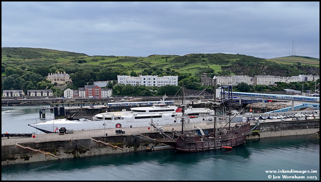 'Galleon Andalucia' with 'Manannan' on the other side of the pier. Despite appearances the galleon is the newer of the two vessels, with Mananan constructed in 1998 and the Andalucia in 2010!