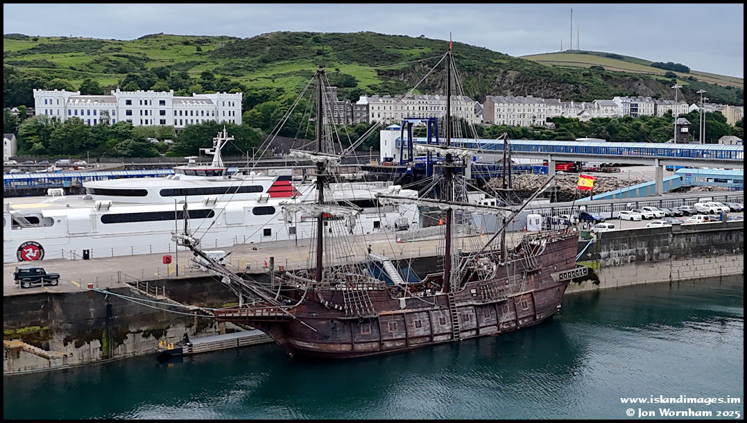 Cropping in for a closer look at the 'Galleon Andalucia'. She is a replica of a typical Spanish galleon used from the 16th to 18th centuries, for exploration and trade around the world.