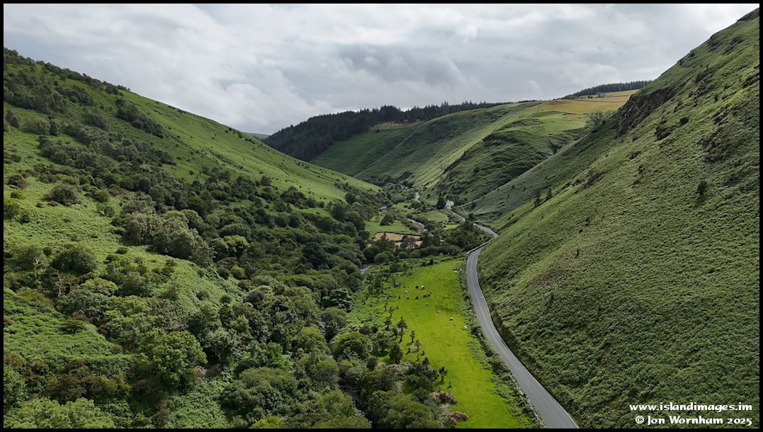 Looking back up the glen after shooting the fly down video. The stone circle you can see in the meadow isn't an ancient monument, but errected by the landowner in fairly recent years.