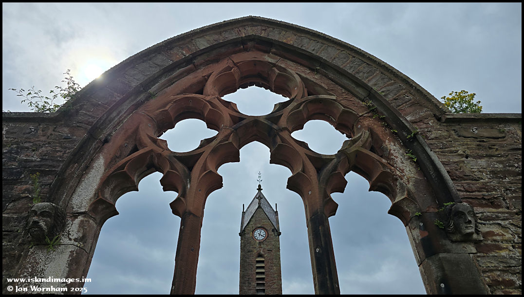 Looking through the easten windo of the old St Peter's Church, which was mostly demolished after a fire in 1958.