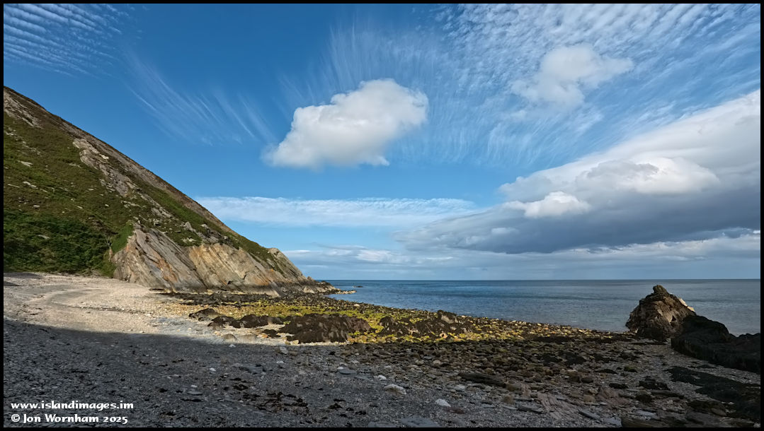 I'm at the south end of the beach again and about to start the climb back up to road level, it's around 600 ft. Lovely cloud formations in the sky.
