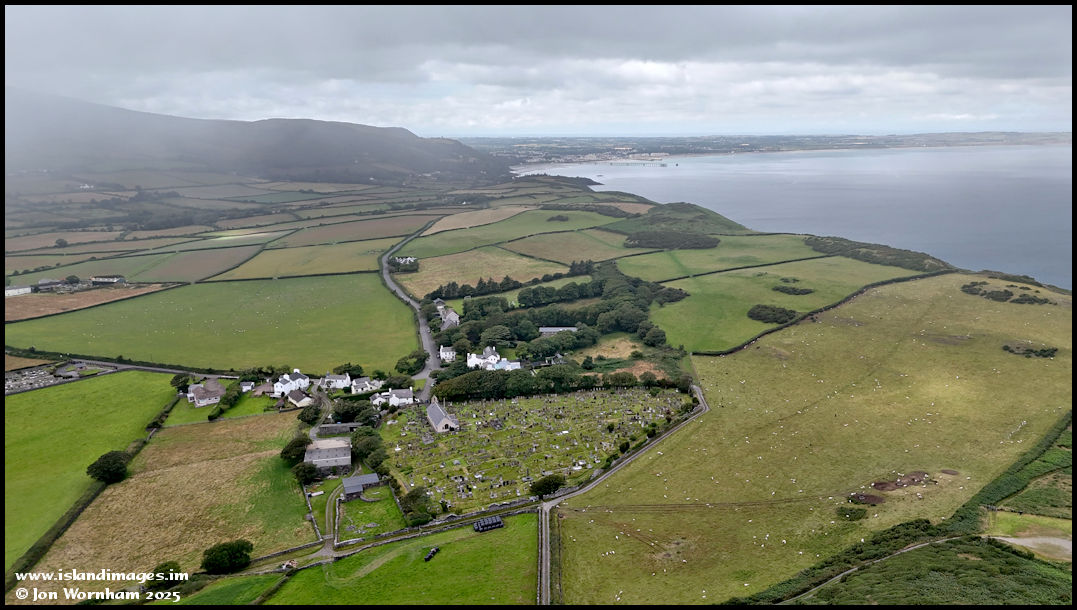 Looking back inland and over the village.  Immediately after taking this picture I noticed that the camera view on the controller was starting to get misty and realised that low cloud was threatening to envelope the drone!  A quick descent rectified that.