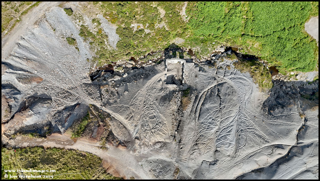 Looking vertically down on the old spoil heaps. The patterns are caused by both natural erosion and trail motorcycles being ridden on them, I hate to think what the riders are inhaling as they disturb the surface