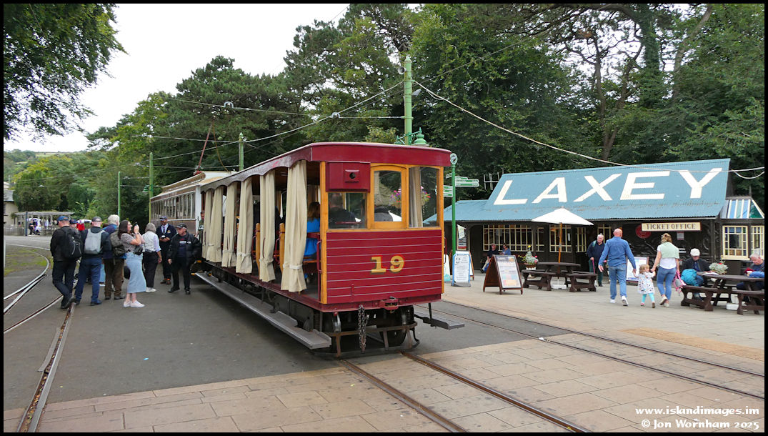 No 9 was hauling trailer '19' (later No 36) which was restored with weather protection curtains, instead of the later roller shutter design. No 19 was delivered in 1894 and renumbered as 36 in 1898.