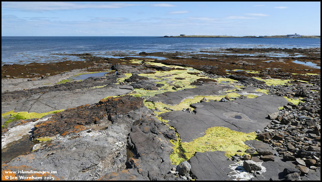 Just starting out on my stroll and looking across the limestone rock that forms the shoreline here. Fort Island across the other side of Derbyhaven.