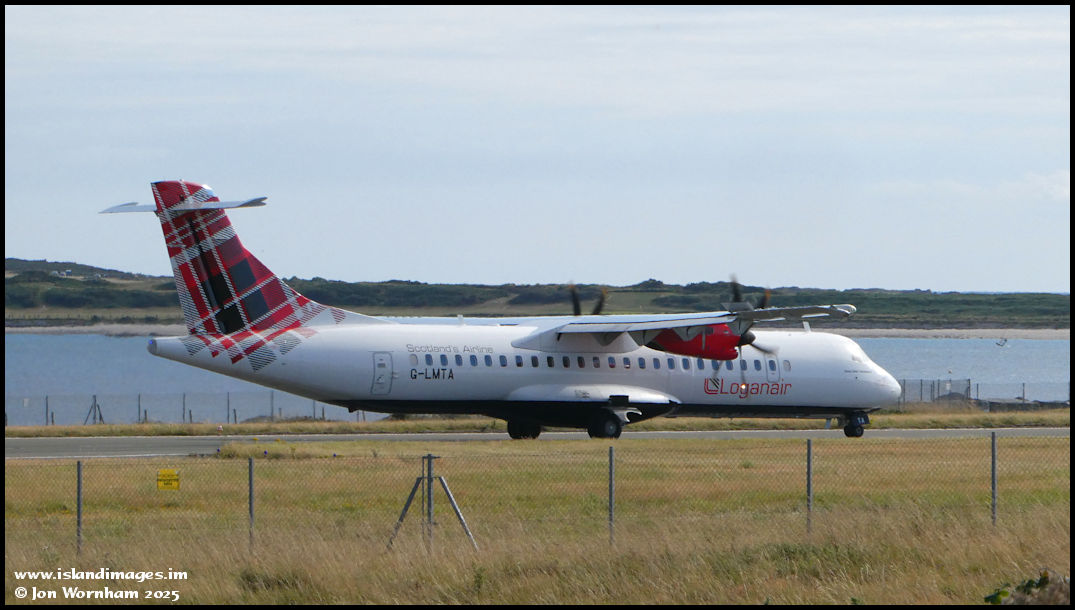 Loganair's ART72-600 G-LMTA lined up on runway 26 and about to depart for London City.