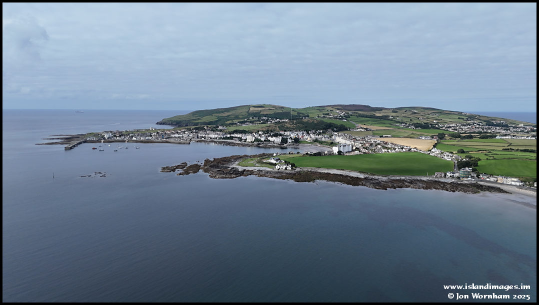 Looking across the bay to Port St Mary. The pole sticking up over to the left is a reminder to mariners of the reef to its right, which can be hidden under just inches of water at high tides.