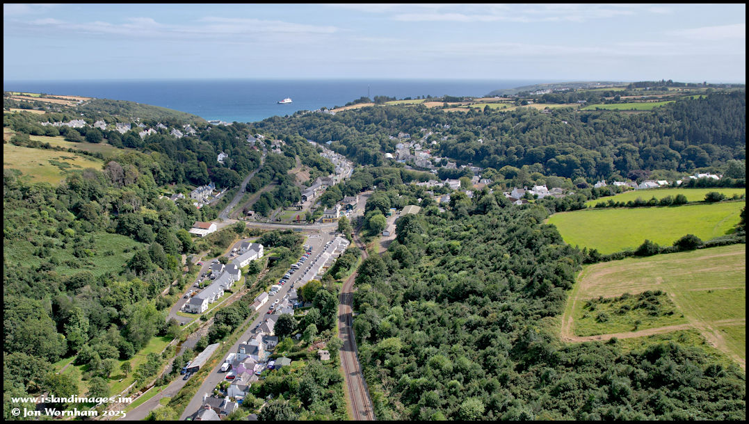 The upper section of Laxey village, often referred to a 'New Laxey'. Can you spot the Snaefell waterwheel down in the glen gardens? The valley off to the right is Glen Roy, whose river also supplied water to power the 'Lady Isabella'.