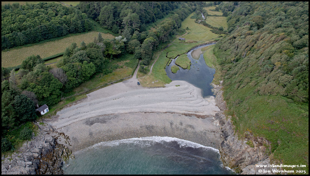 A near vertical view of the beach. As can be seen, there is no obvious way for water from the river to reach the sea. Click the picture to see how it looked in January 2024. You can toggle between the pictures.