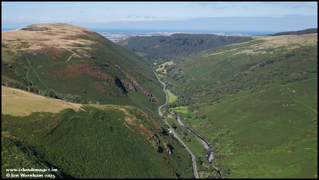 A bit of a crop on a larger picture, to look down into Sulby Glen where road and river share the bottom of the valley. The pool featured in a recent post is right at the bottom of this picture.